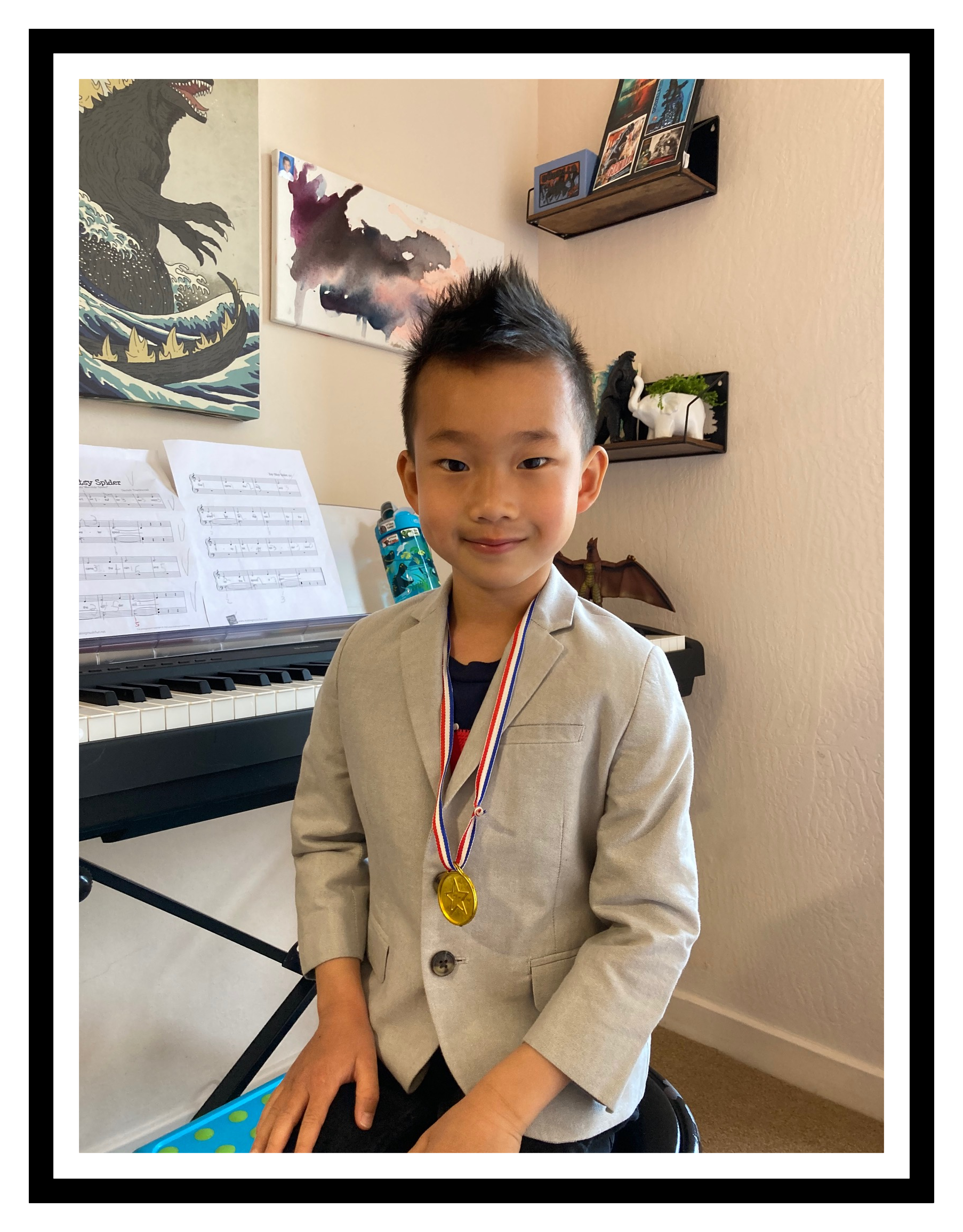 From Patrick: “Atticus is such an enthusiastic and creative student! He is always ready to show me the next cool song he wrote on the piano and brings the same enthusiasm he has for dinosaurs and Godzilla into every song he plays. Great job, Atticus!!”