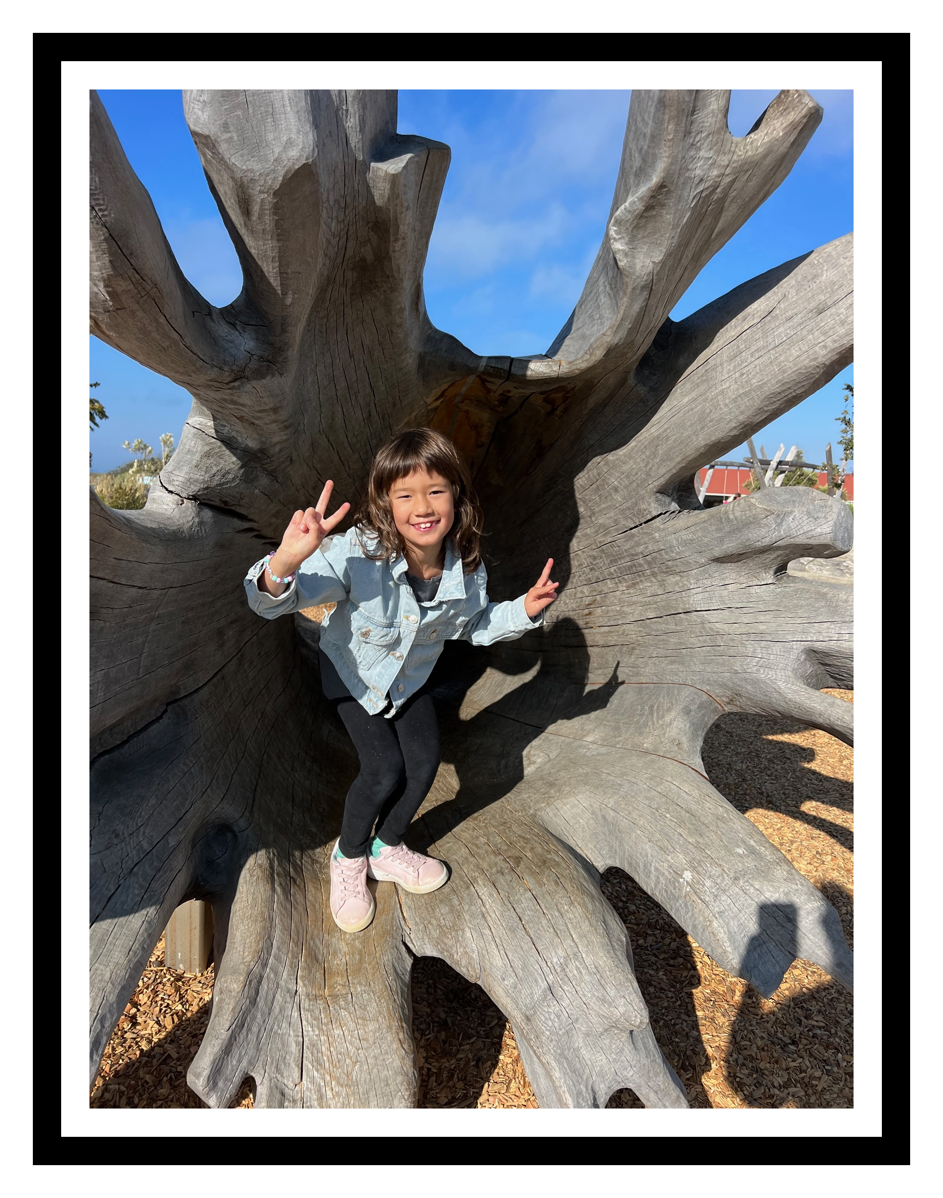 I love playing outside on all the playgrounds around San Francisco and one thing I really like to do is climb across all the monkey bars.