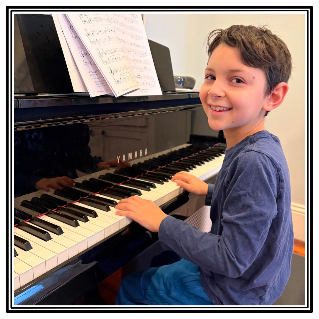 From Patrick: Tiberius is a force of nature in the best way! He shows up to all his lessons enthusiastic and immediately ready to show everyone the amazing practice he did the previous week. Tiberius makes up his own creative songs, and loves to play in both hands, especially if the notes are moving in contrary motion. Keep being awesome, Tiberius!
